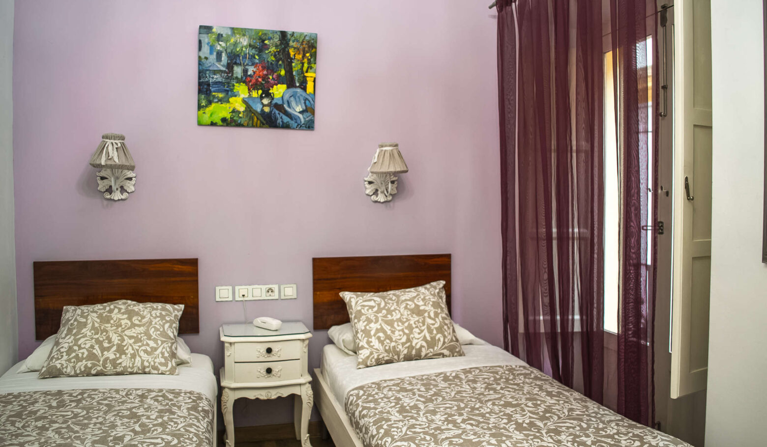 Twin PAX max: 3 Tamaño : 15m² / 161,45 pies Situación : Exterior {:es_ES}Confort, encanto, tranquilidad… Ya que cada uno de nuestros huéspedes es único, no hay dos habitaciones exactamente iguales en “Un Patio en Santa Cruz”. Lo podrá comprobar a través de pequeños detalles como flores queLeer más